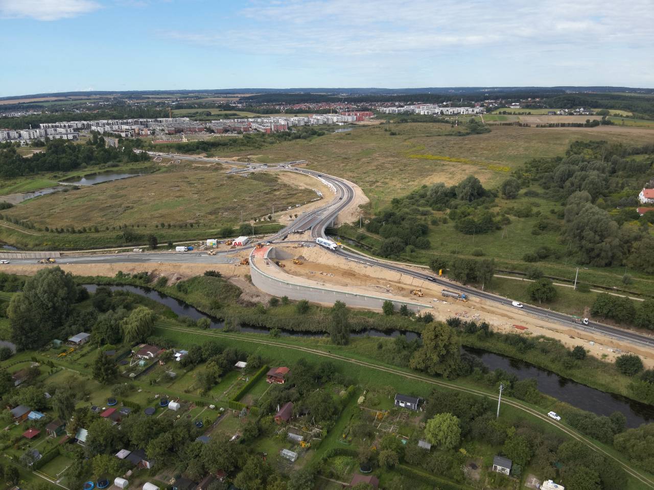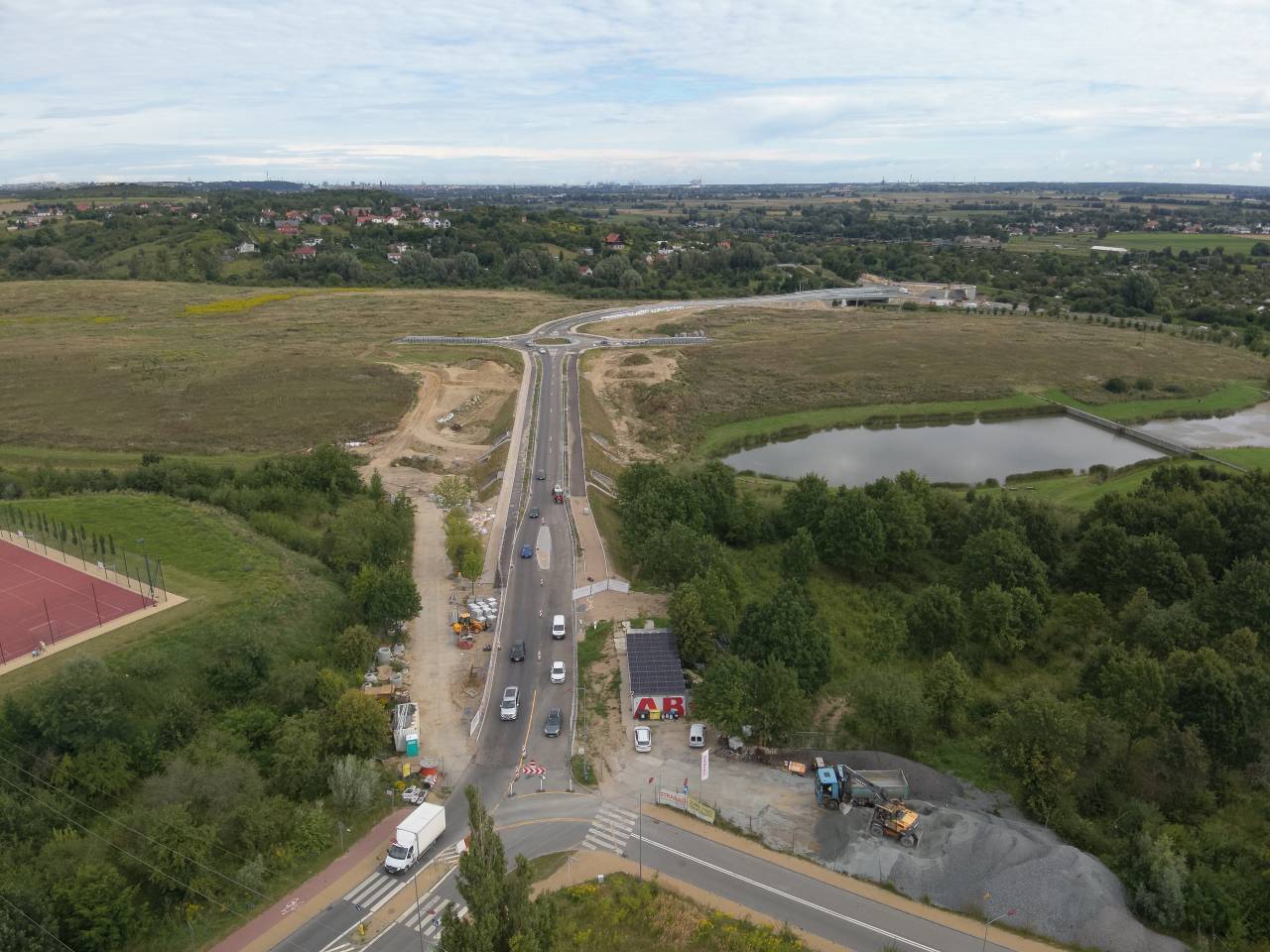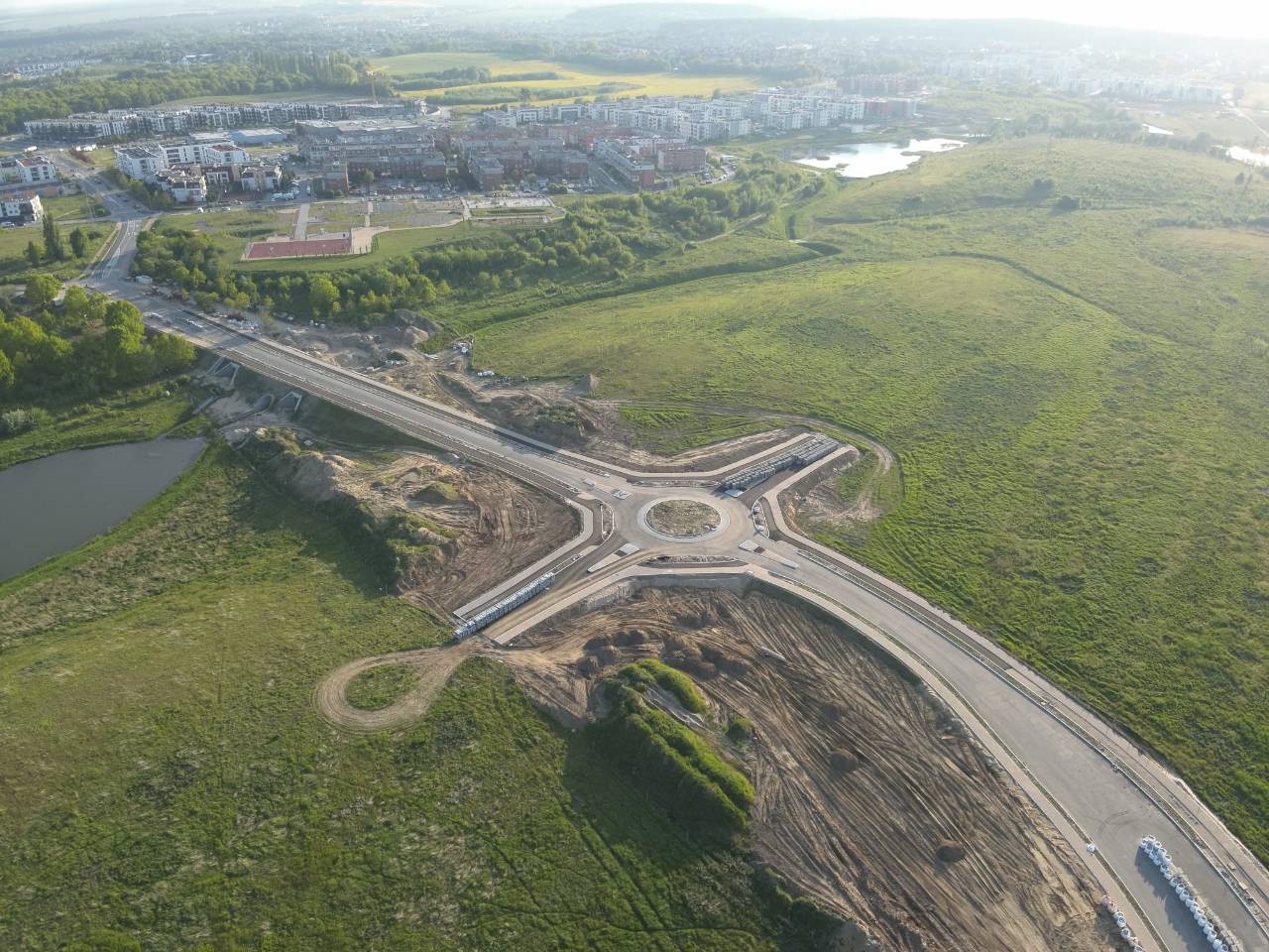 - skrzyżowanie typu rondo z dwoma wylotami w stronę przyszłych nowych dróg,