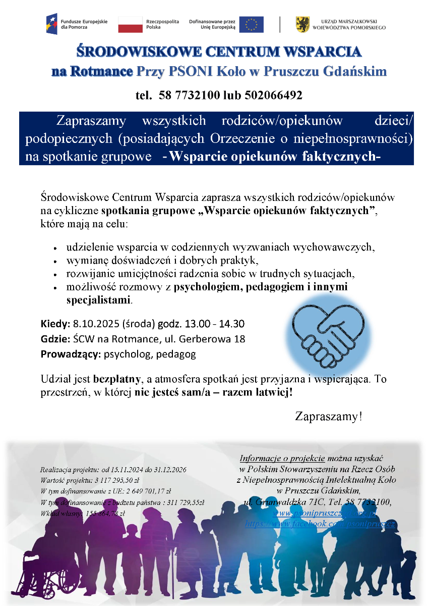 Polskie Stowarzyszenie na Rzecz Osób z Niepełnosprawnością Intelektualną Koło w Pruszczu Gdańskim zaprasza na bezpłatne wydarzenia w Środowiskowym Centrum Wsparcia na Rotmance.