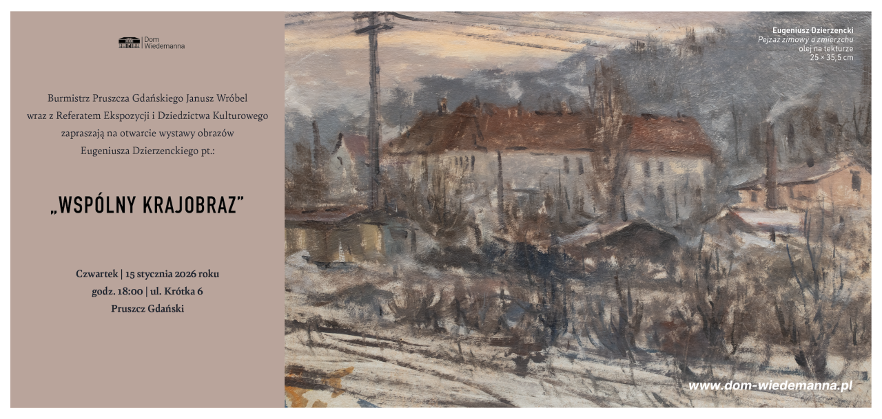 Serdecznie zapraszamy na wystawę od 15 stycznia do 22 lutego 2026 r., otwarcie odbędzie się 15 stycznia, w czwartek, o godz. 18:00 w Pruszczu Gdańskim przy ul. Krótkiej 6 w Domu Wiedemanna.