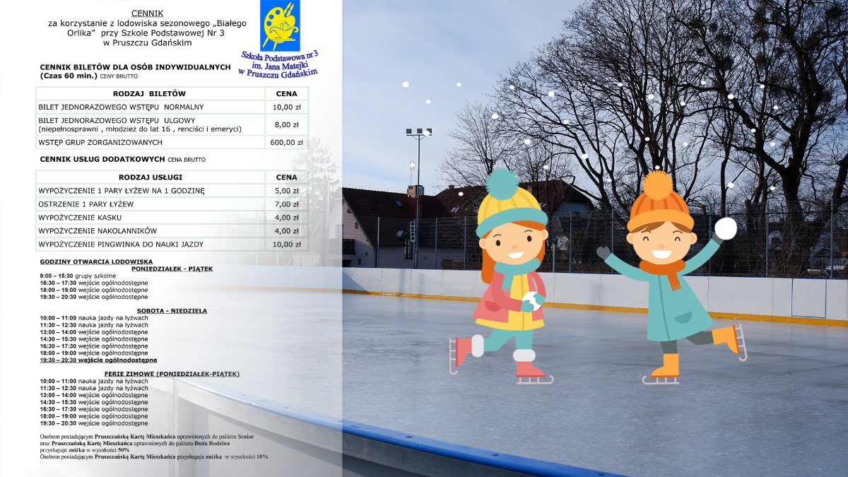 Korzystanie z obiektu jest odpłatne, ale pamiętajcie o zniżkach dla posiadaczy Pruszczańskiej Karty Mieszkańca Przy lodowisku działać będzie również wypożyczalnia sprzętu.