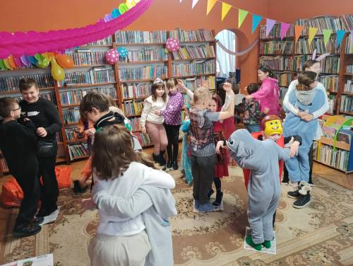 Akcję Zima zwieńczył bal karnawałowy. Biblioteka wypełniła się muzyką, tańcem i śmiechem. Dzieci, przebrane za zwierzęta i bajkowe postaci, chętnie brały udział w zabawach ruchowych i konkursach. Słodki poczęstunek był miłym akcentem na zakończenie intensywnego, pełnego wrażeń tygodnia.