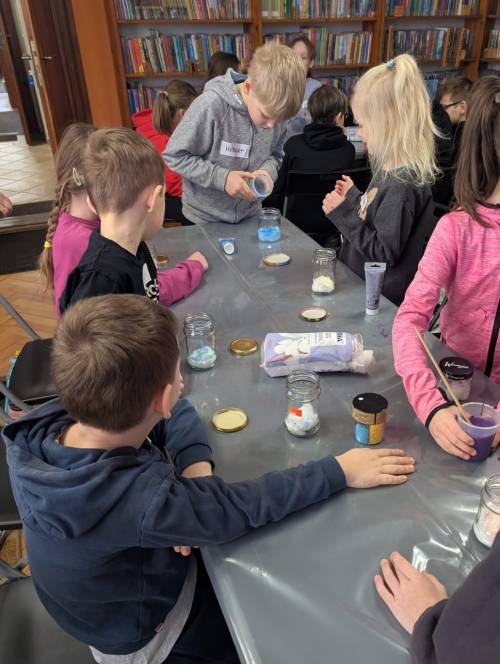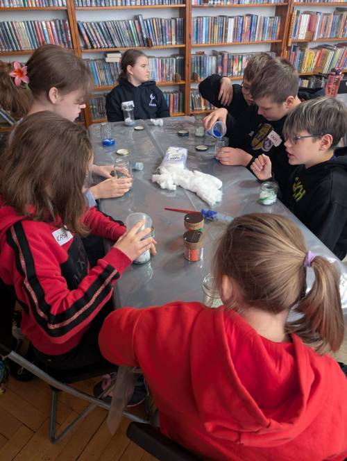 Część warsztatowa przyniosła prawdziwy hit: „kosmos w słoiku”. Kolorowe, brokatowe galaktyki zamknięte w szkle stały się pamiątką pierwszego dnia ferii.