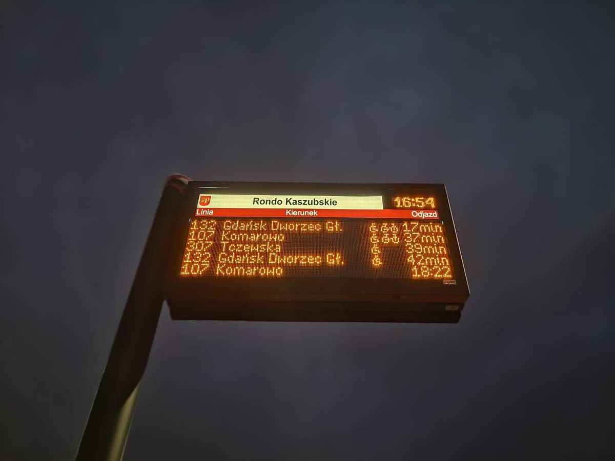 W piątek, 24 października 2025 r., w godzinach popołudniowych uruchomiono kolejny elektroniczny wyświetlacz rozkładów jazdy autobusów ZTM Gdańsk. Nowoczesny ekran został zainstalowany na przystanku Pruszcz Gdański, ul. Raciborskiego (Rondo Kaszubskie).