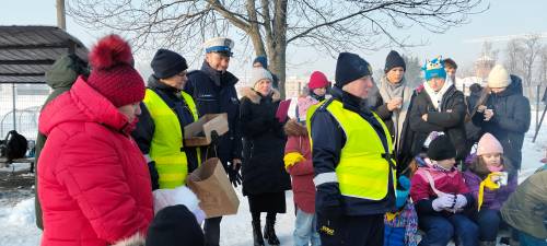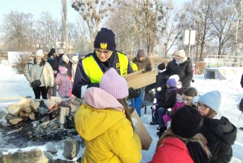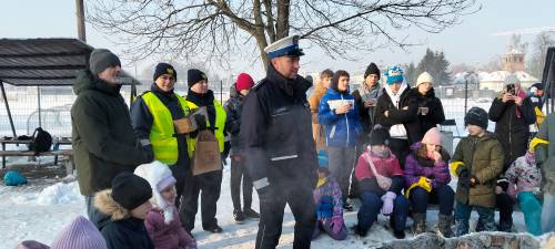 Podczas spotkań dzieci uczą się również, jak reagować w sytuacjach zagrożenia oraz gdzie szukać pomocy. Funkcjonariusze przypominają, aby w razie niebezpiecznego zdarzenia natychmiast powiadomić osoby dorosłe lub służby ratunkowe, nie podejmując samodzielnych, ryzykownych działań. Obecność Straży Miejskiej i Policji podczas ferii zimowych ma nie tylko charakter prewencyjny, ale również edukacyjny. To okazja do rozmów, zadawania pytań i budowania świadomości, że ferie mogą być czasem radosnym i bezpiecznym – pod warunkiem przestrzegania podstawowych zasad bezpieczeństwa.